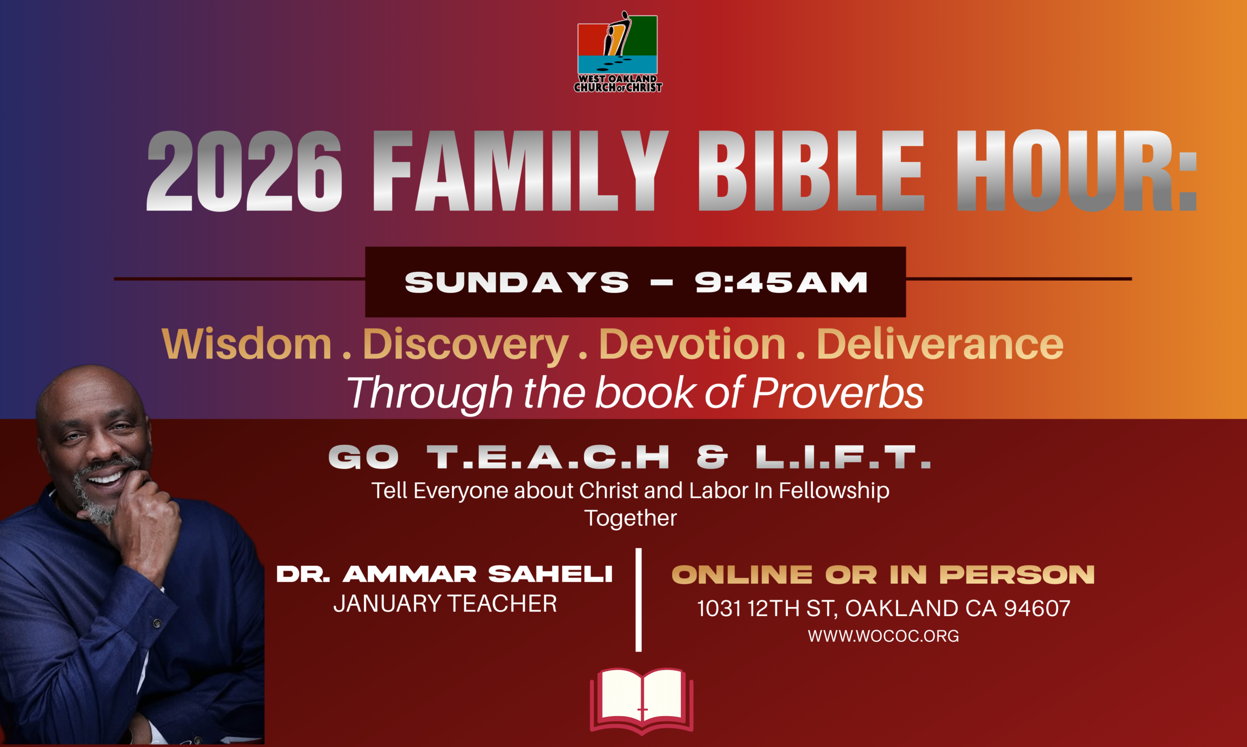 At the West Oakland Church of Christ, we are committed to supporting each other's spiritual development. We foster accountability and aim to encourage and uplift one another. For those seeking to live in accordance with the teachings of Jesus Christ, our church is anchored in discipleship. We cherish and provide guidance and a welcoming environment, conducive to Disciple/Christian growth. Through love, the Holy Spirit, and the Word of God, we remain dedicated to our three priority areas: Evangelism/Discipleship, Community Outreach, and Fellowship.